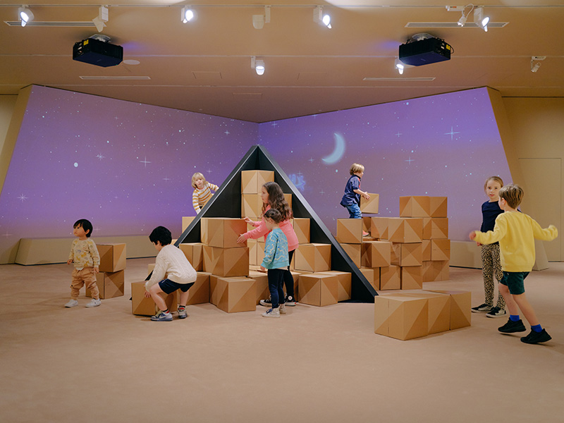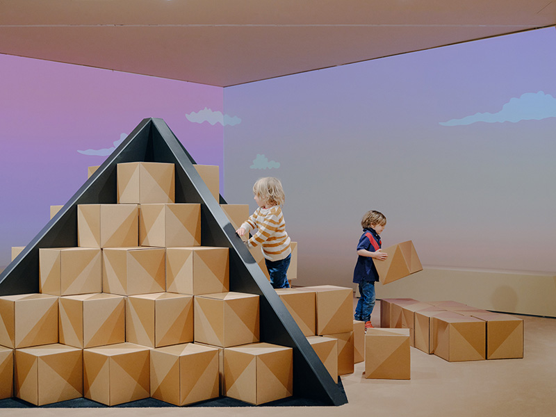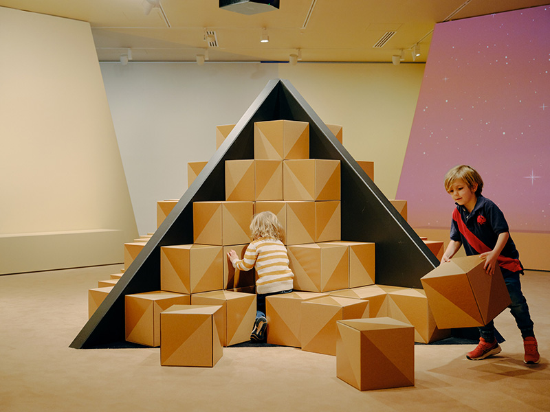 The National Gallery of Victoria design team tasked Fold Theory with designing a robust yet recyclable building block. Strong enough for kids to stand on, the deceptively simple cube conceals its internal structure. Straightforward assembly from flat pack results in an average of 2.5 minutes per box. Ancient Egypt for Kids: a free educational play space associated with the Pharaoh Melbourne Winter Masterpieces exhibition, 14 June to 6 October 2024 at NGV International.